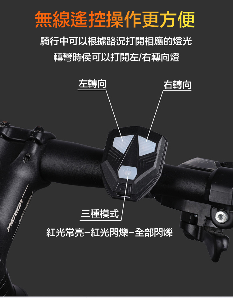 首頁 > 自行車腳踏車配件 > 自行車尾燈 > (全台瘋)L016 新款無線遙控轉向燈 山地公路單車尾燈 騎行燈 LED自行車燈尾燈 台灣現貨