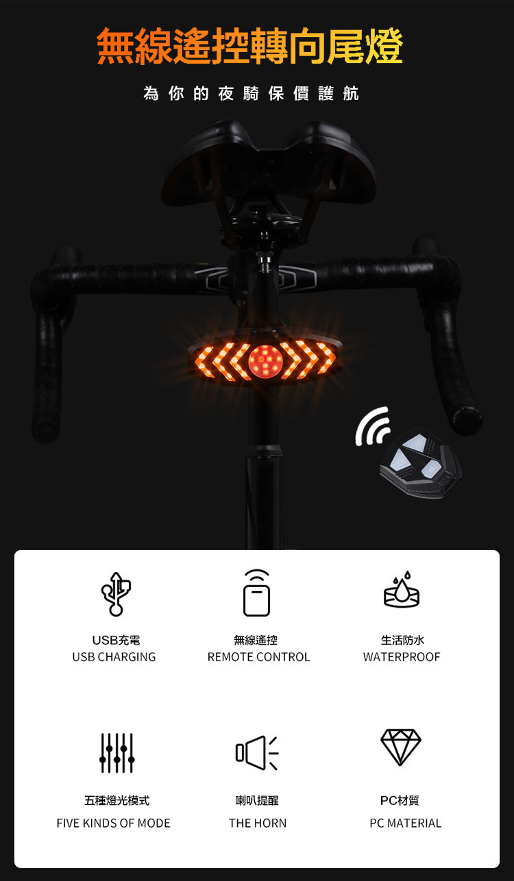 (全台瘋)L016 新款無線遙控轉向燈 山地公路單車尾燈 騎行燈 LED自行車燈尾燈 台灣現貨