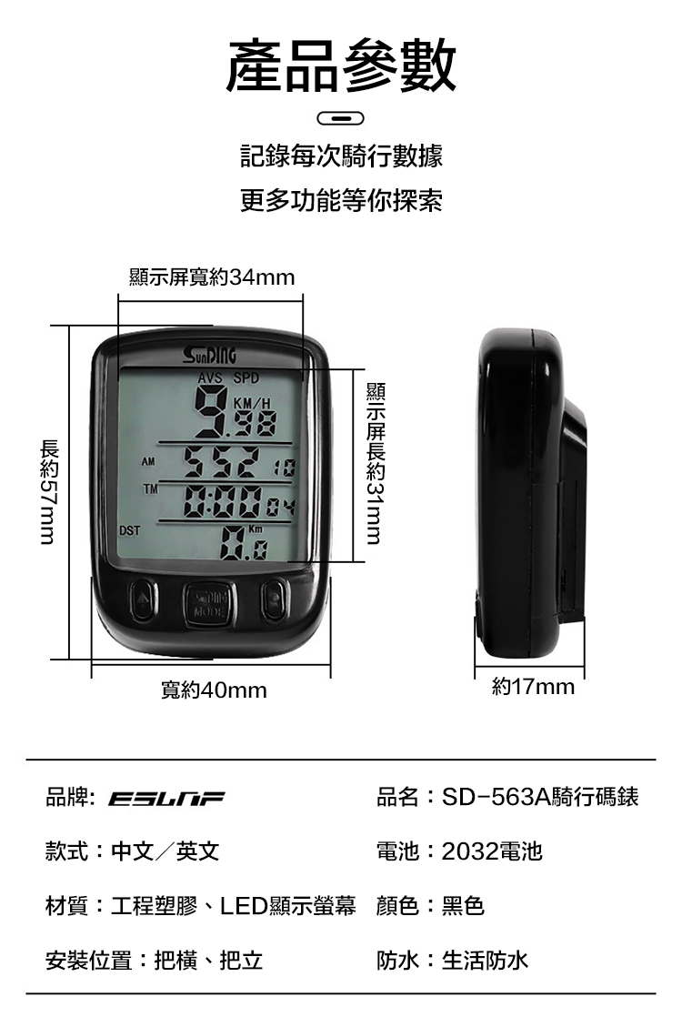 品名:SD-563A騎行碼表