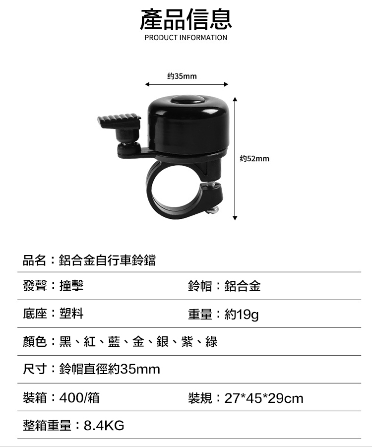 品名:鋁合金自行車鈴噹
