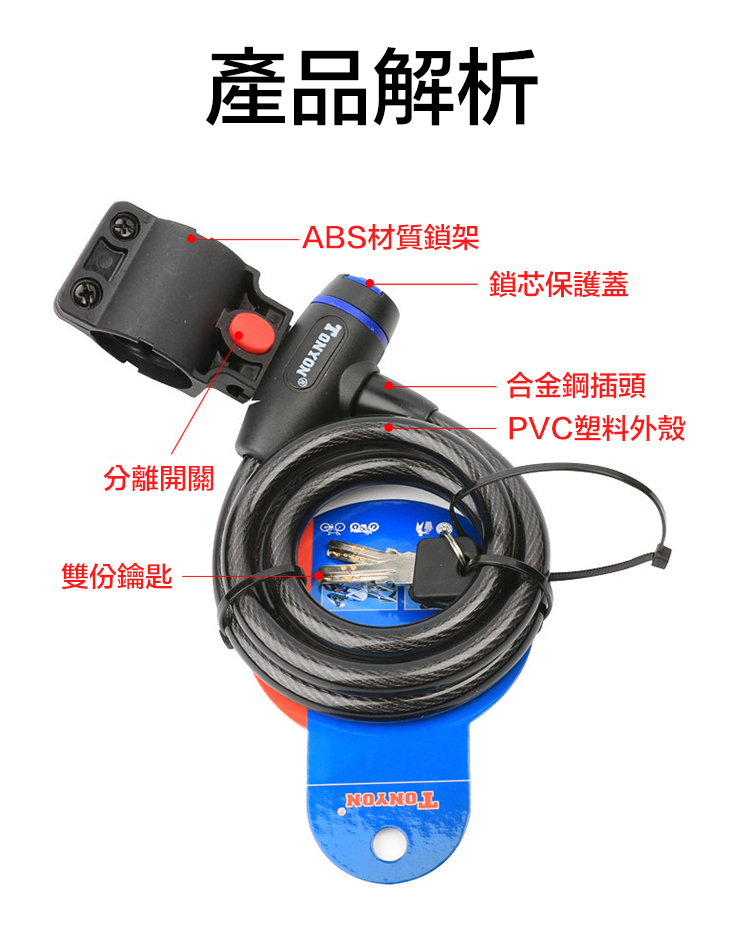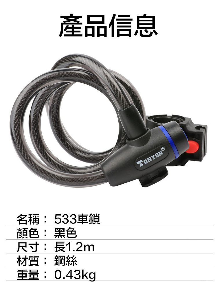 (全台瘋)T009 TY533E 山地自行車鋼絲鎖 單車鑰匙鎖 騎行裝備1.2米 腳踏車鎖 現貨供應