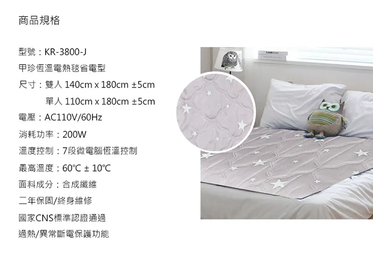 商品內容:防塵收納袋*1 電毯*1 開關*1 說明書*1