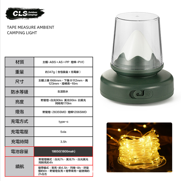 這款 CLS 戶外露營氣氛燈 非常適合營造露營與戶外擺攤的溫馨氛圍!星星串燈的設計不僅增添浪漫感,也能讓您的露營區域更具辨識度。