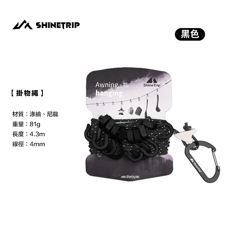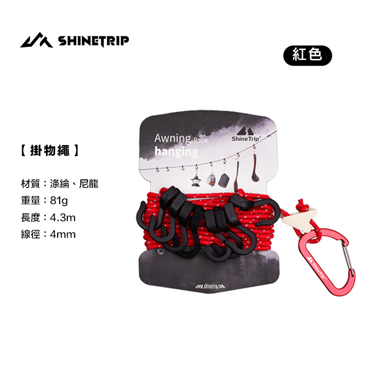 適合吊掛燈具、鍋具、濕衣物、背包等露營裝備。