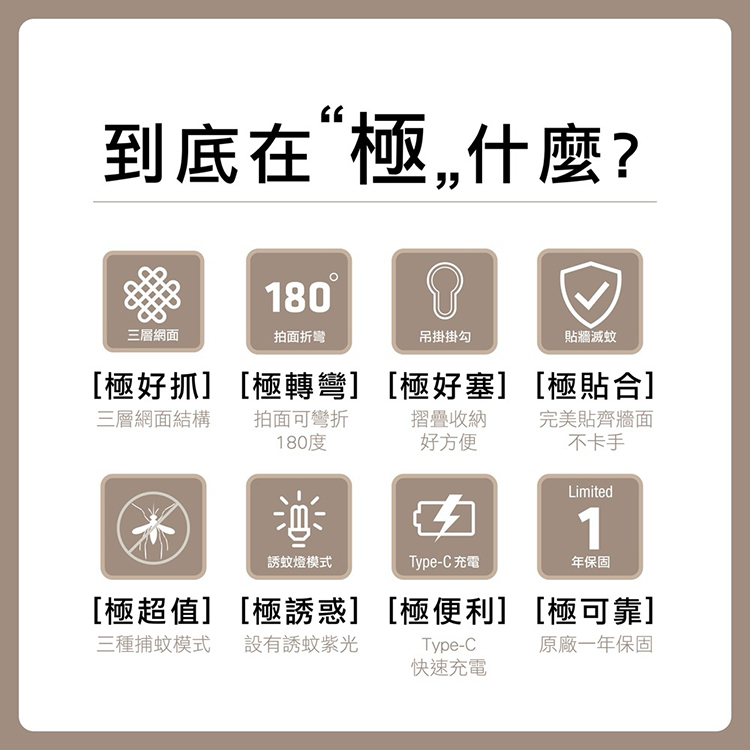 品名:[極野家] 三合一可摺疊Type-C充電捕蚊拍/三層網面