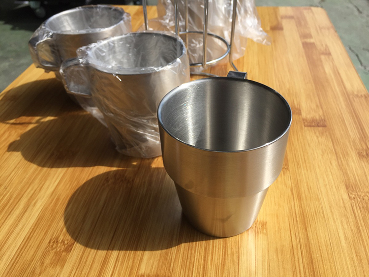 品名:304雙層隔熱不銹鋼杯~4杯組附杯架