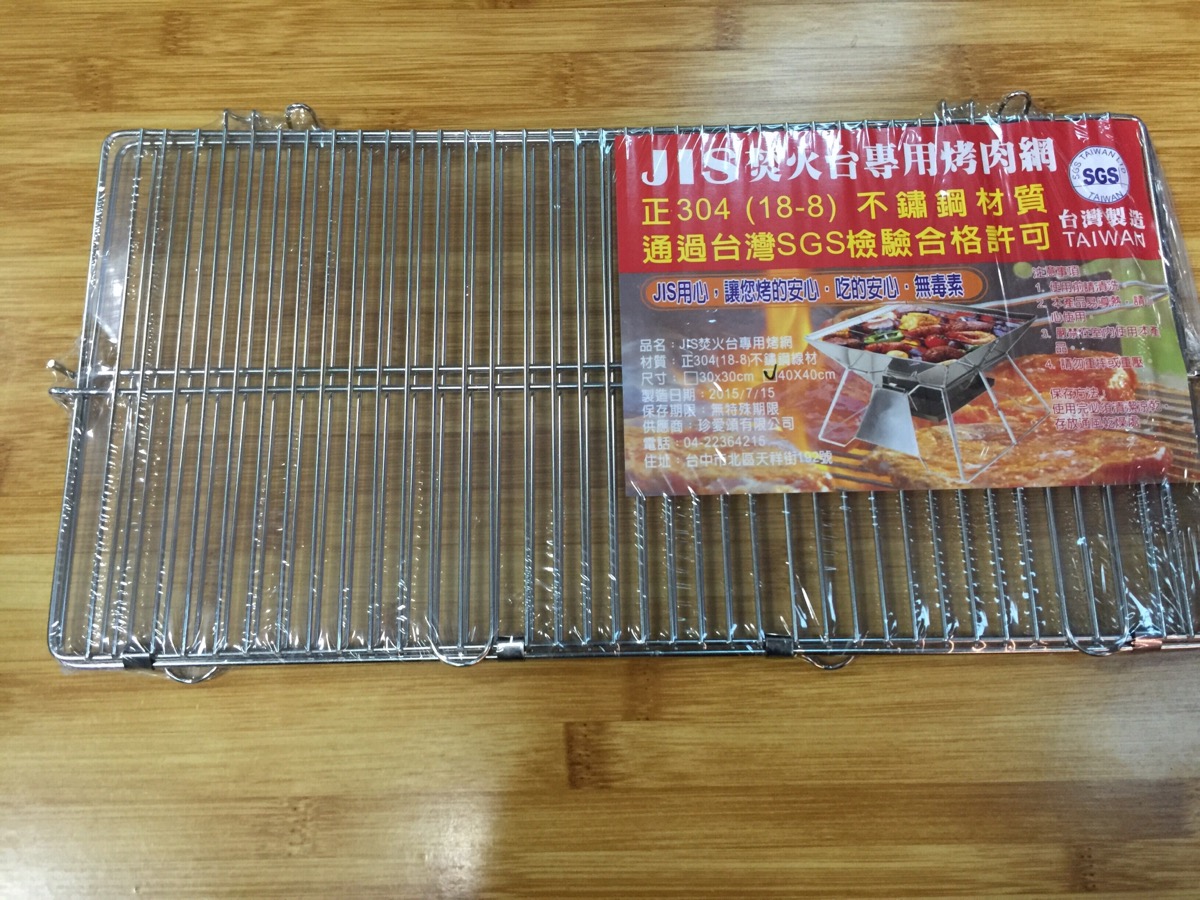 焚火台烤網~L號 產地: 台灣 重量: 590公克 規格: 展開42*42CM 材質: 304不鏽鋼~SGS檢驗合格