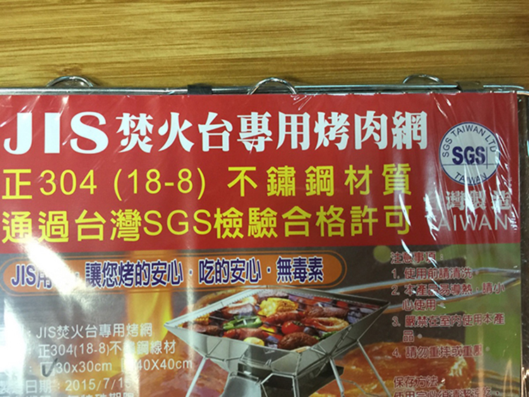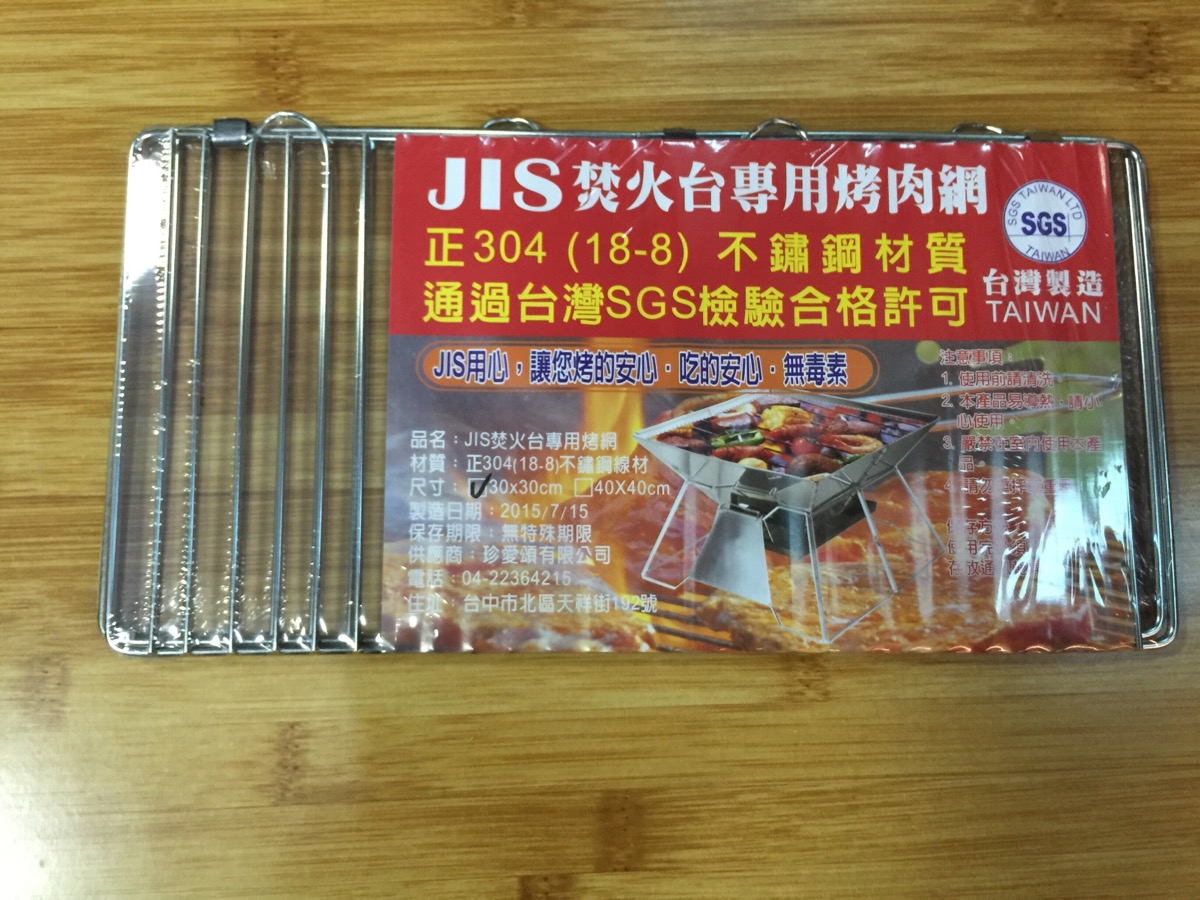 焚火台烤網~M號 產地: 台灣 重量: 590公克 規格: 展開30*30CM 材質: 304不鏽鋼~SGS檢驗合格