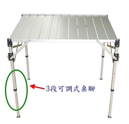 鋁捲桌(大型) - 展開尺寸:桌面 98 x 86 公分 桌子高度 53、66、75公分(高度三段可調)