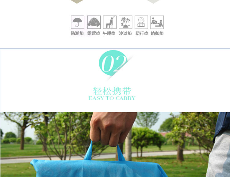 本產品是一款防潮休閒墊,可以鋪在地面、草坪、沙灘上,本產品選用
