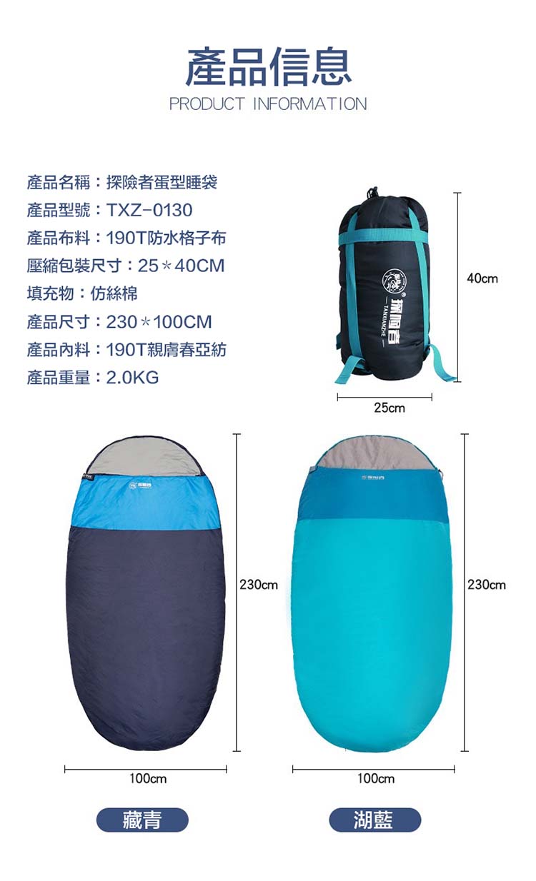 產品名稱:探險者蛋型睡袋