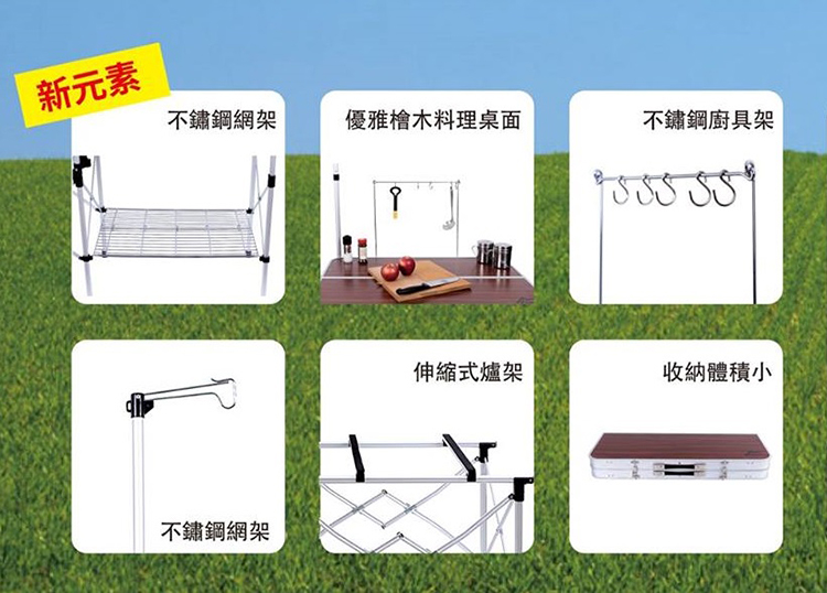 2.附有網架與掛勾,可依個人需要放置各種烹調用具。