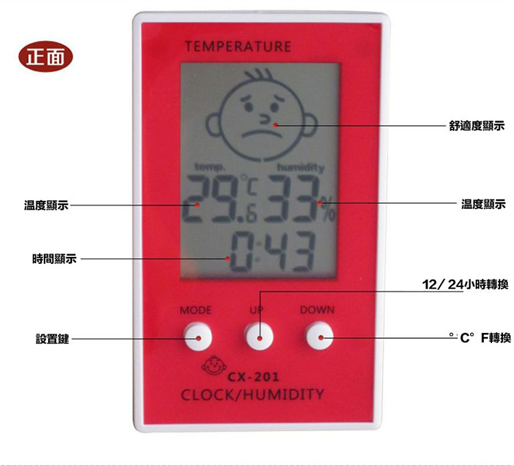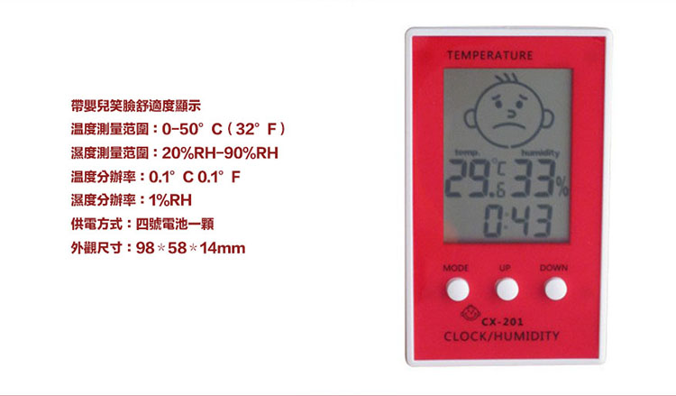 【品名】電子式溫(溼)度計時鐘(附電池)