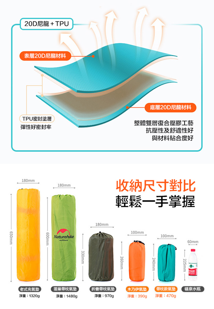 材質:20D尼龍+TPU+PAT(專利氣嘴)
