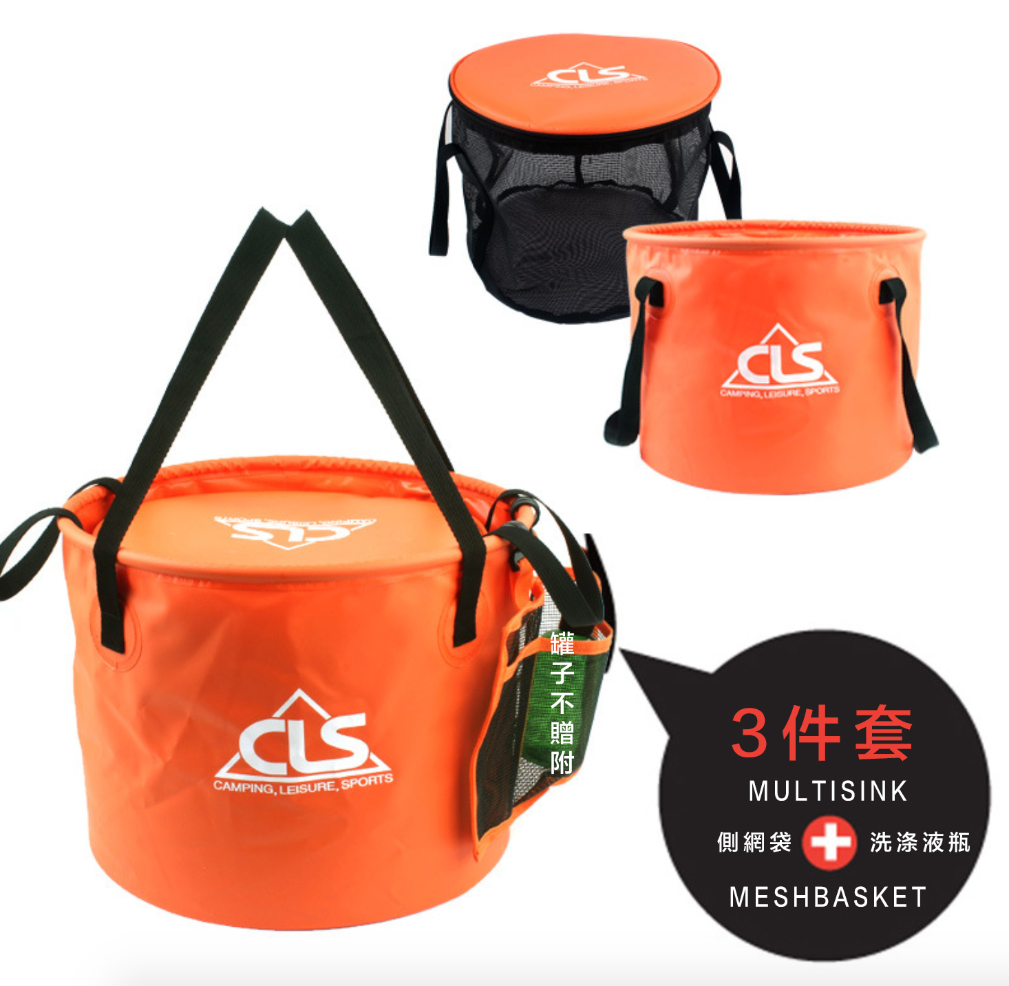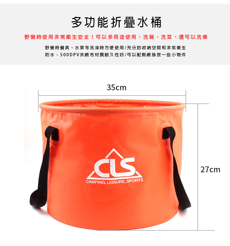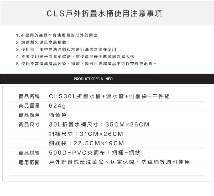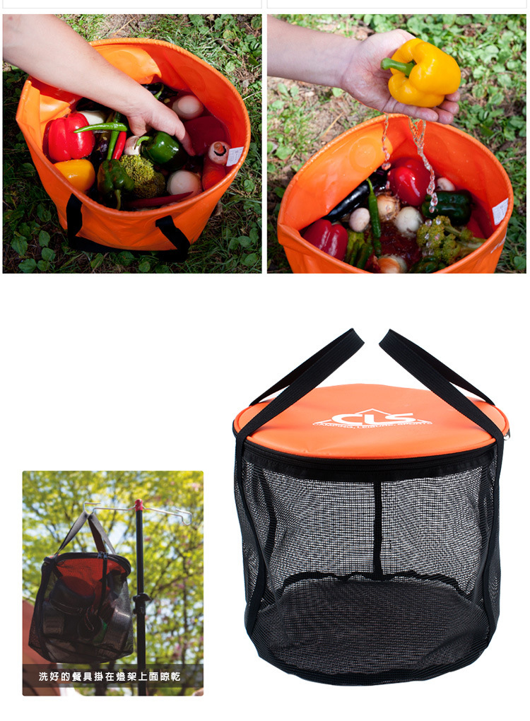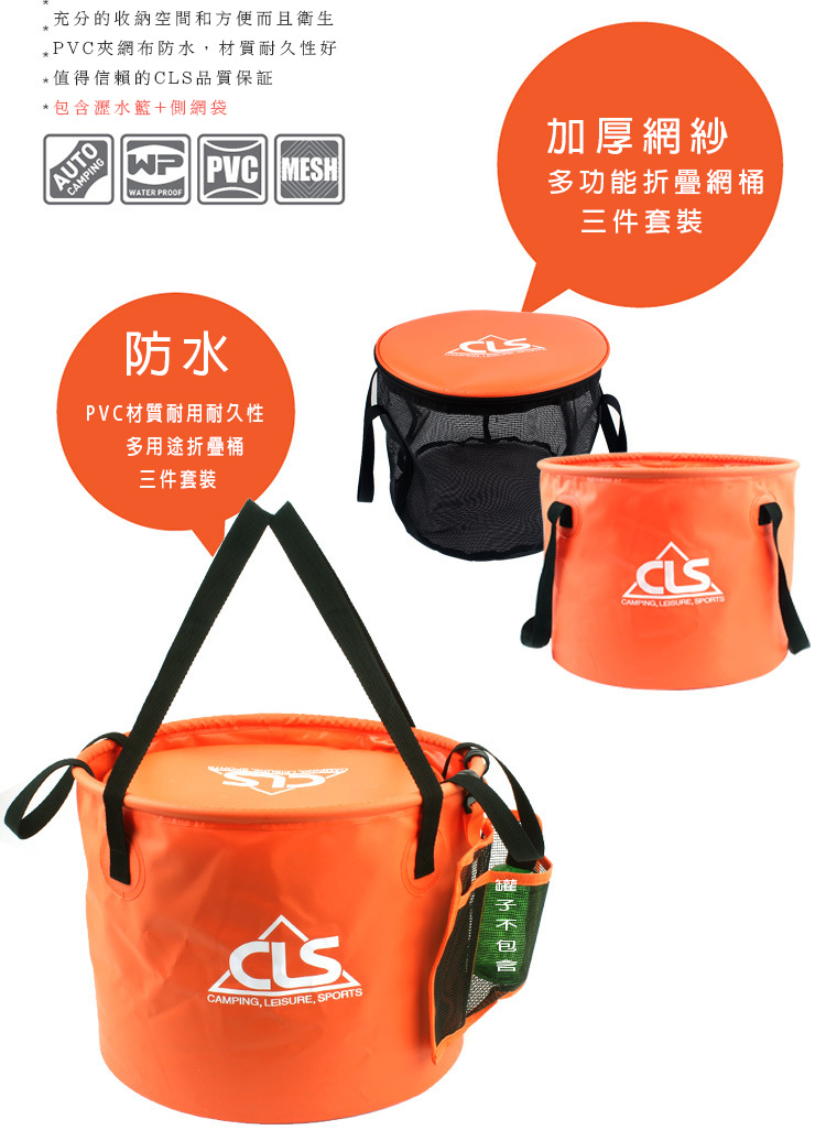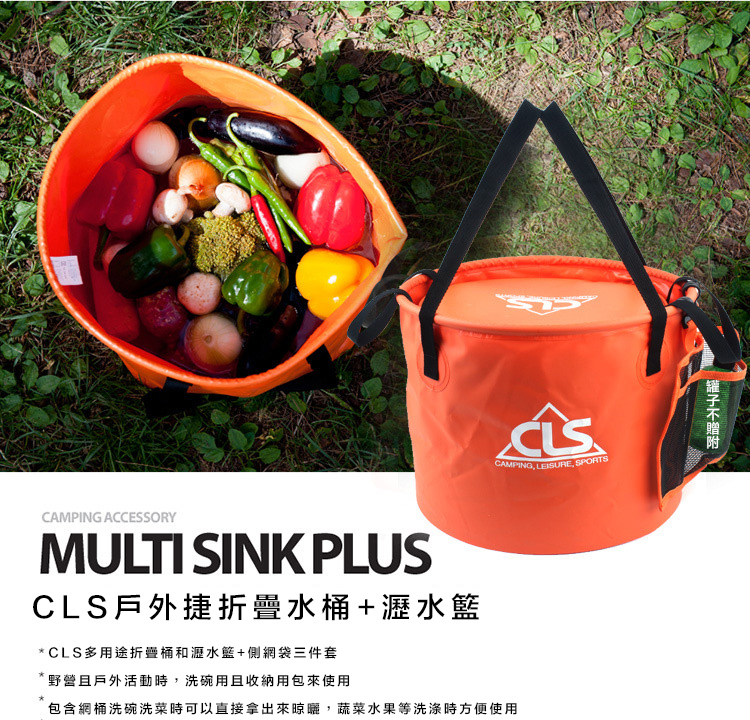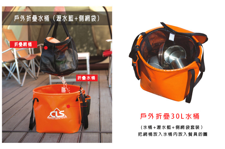品名:CLS折疊水桶30L橙色+瀝水籃 送側網袋