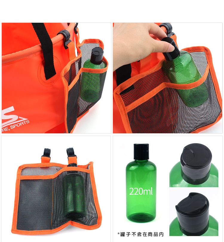 用500DPVC夾網布高強度塑料製作的桶身可以確保空桶可以立起來,平時可以裝置物品 必要時可以折疊攜帶