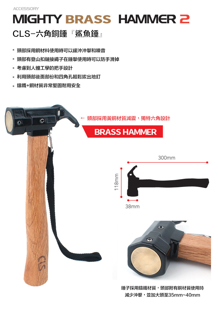 品名:CLS-六角鯊魚錘 規格:300*118*38mm 重量:695 顏色:黑色 材質:黃銅,青鋼木 產地:Made in China