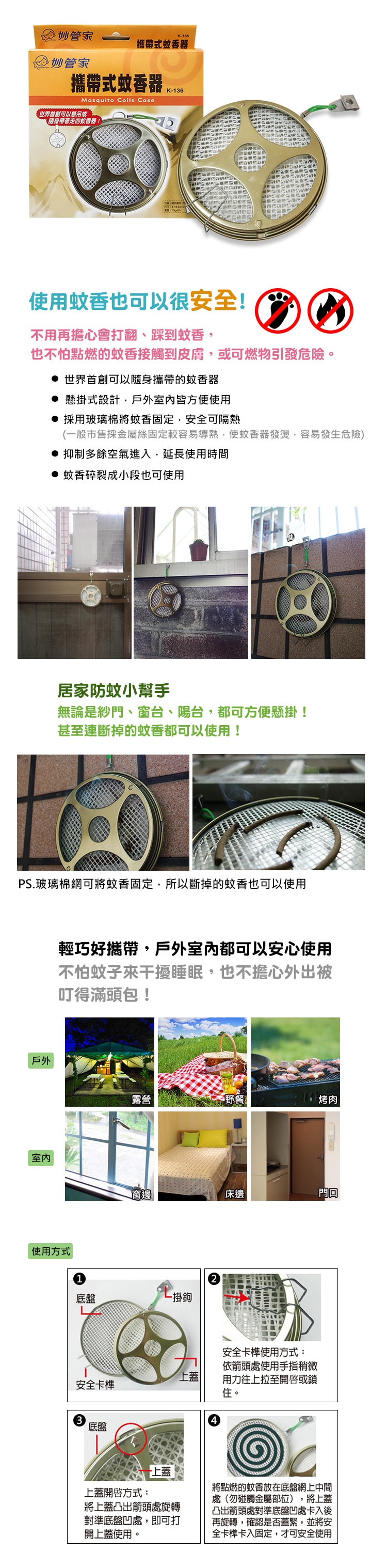 3.將蚊香放入盒內中央,請注意蚊香請勿觸碰到周圍之金屬部份。