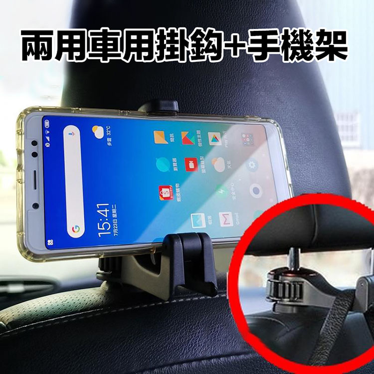【品名】隱藏式兩用椅背掛勾+手機架