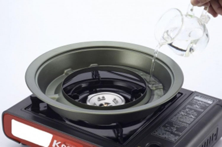 底盤背面凹槽有止滑作用,烤盤則為日本進口食用級塗料,適用休閒爐及登山盧(三腳或四腳的爐子皆可使用)