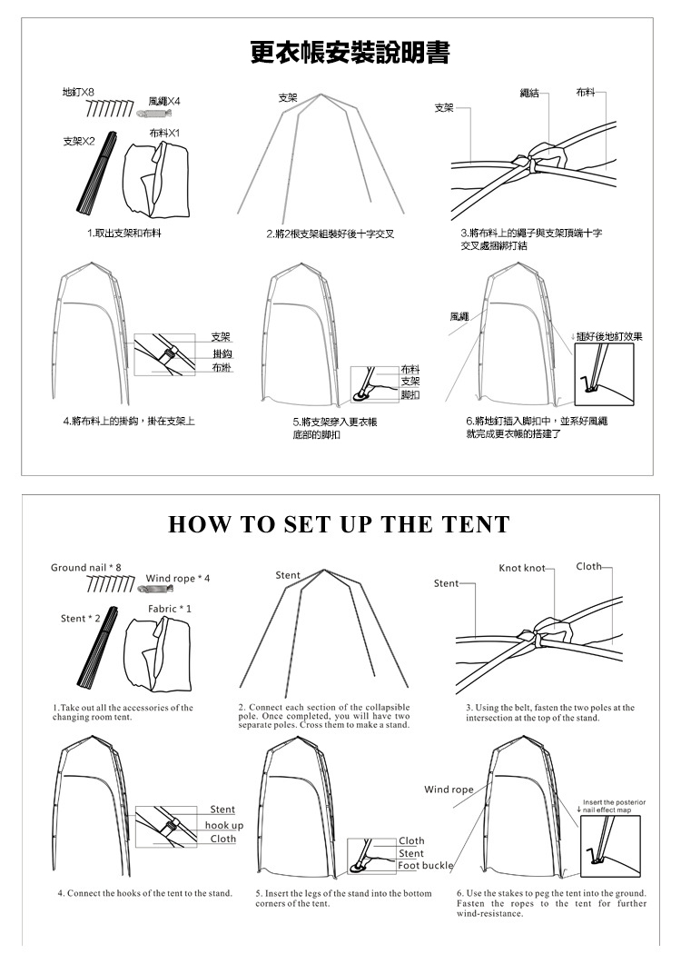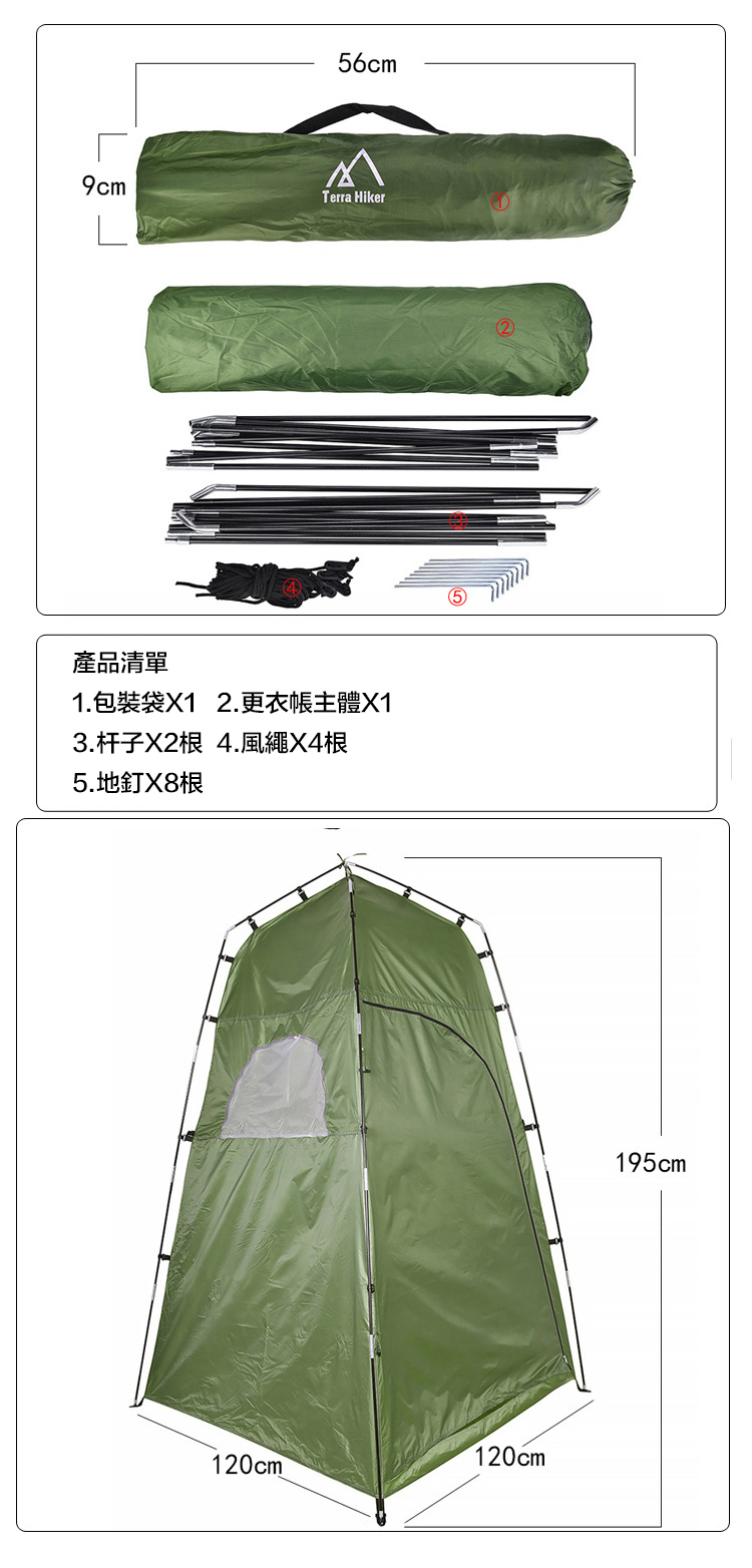 清單:帳篷布主體*1+桿子*1副+風繩*4根+地釘*8根+說明書*1份,16個/箱 60.5*35*37CM