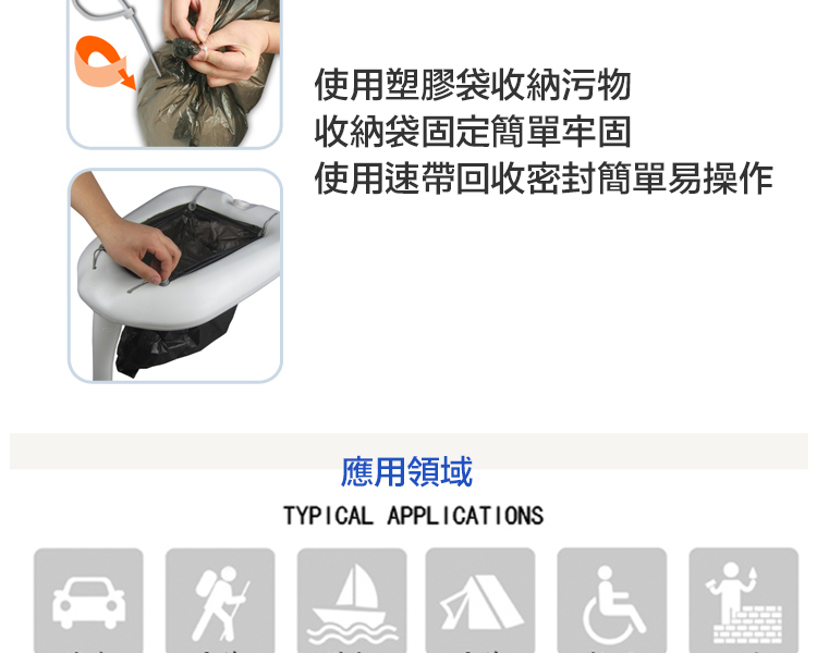 品名:簡易車用戶外套袋式行動馬桶 折疊應急攜帶式可沖水