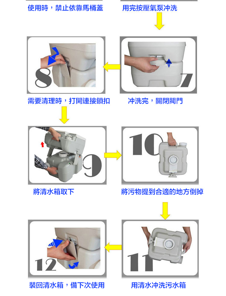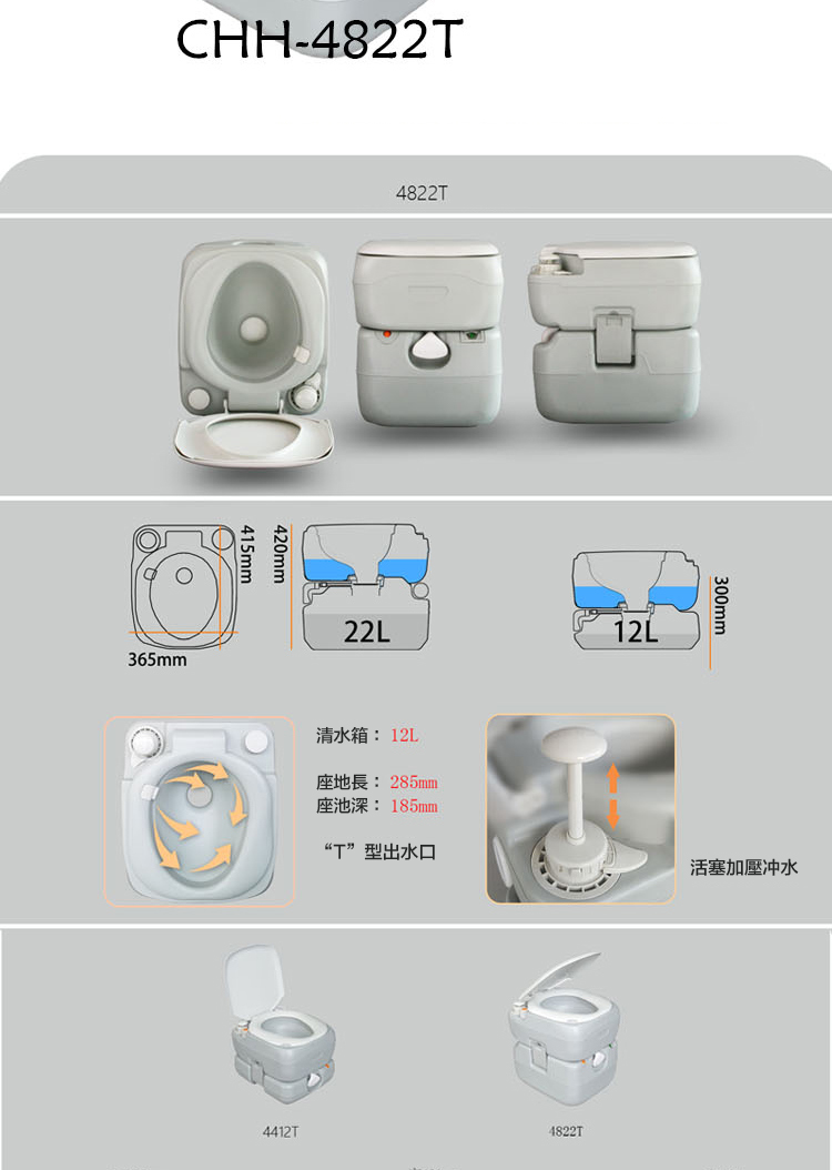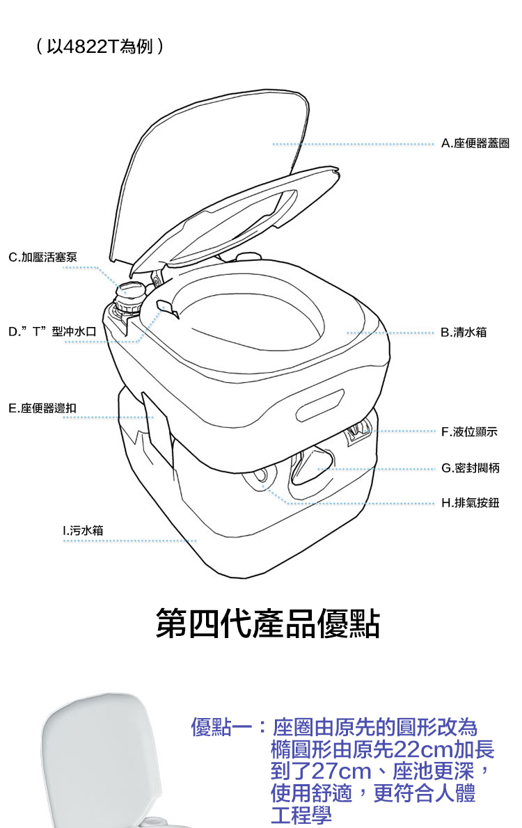 品名:第四代 活塞加壓沖水系統 12L 4412T行動攜式車用可沖水馬桶