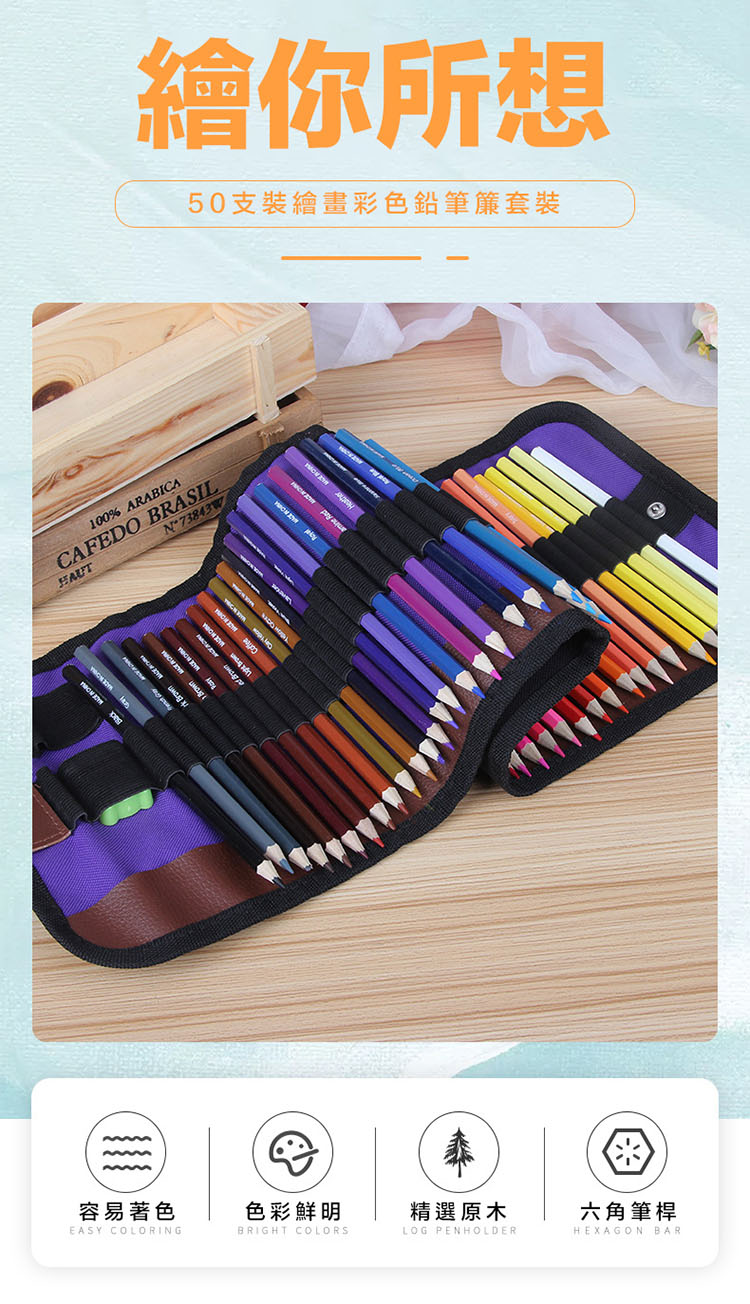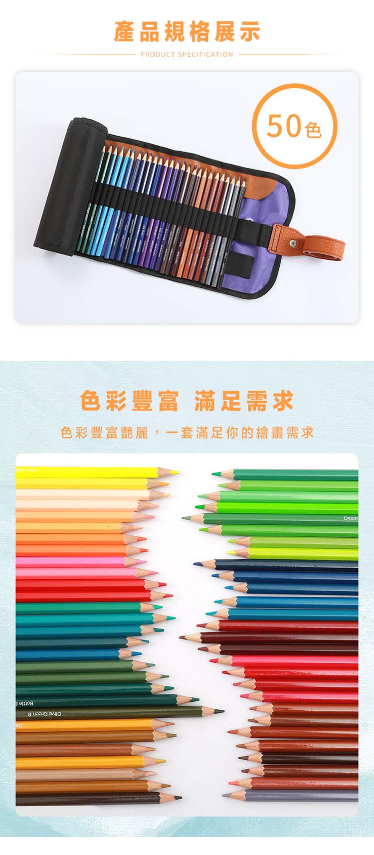 品名:可捲式帆布袋裝油性彩色鉛筆50色
