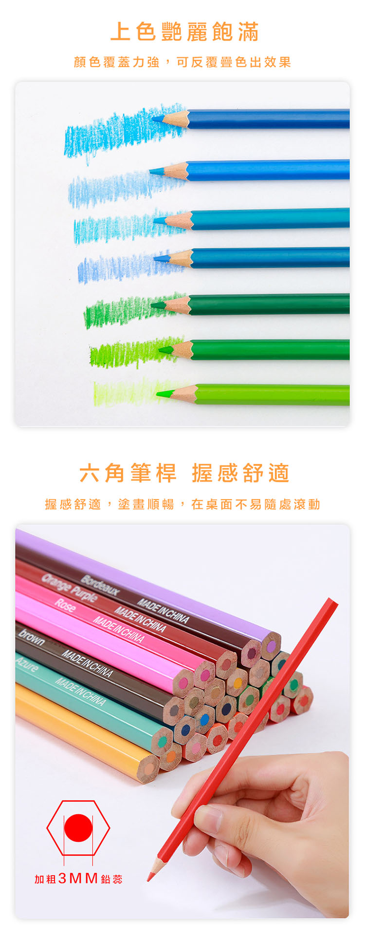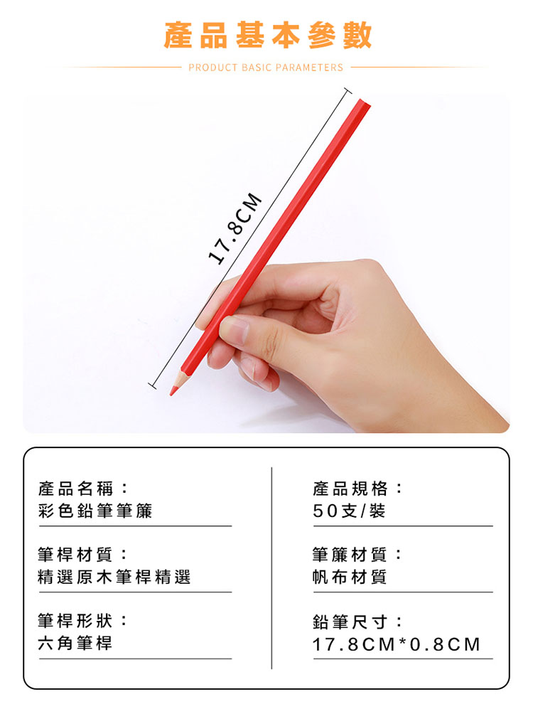 內容物:1.外袋乙個 2.50支彩色鉛筆 3.削筆器乙個