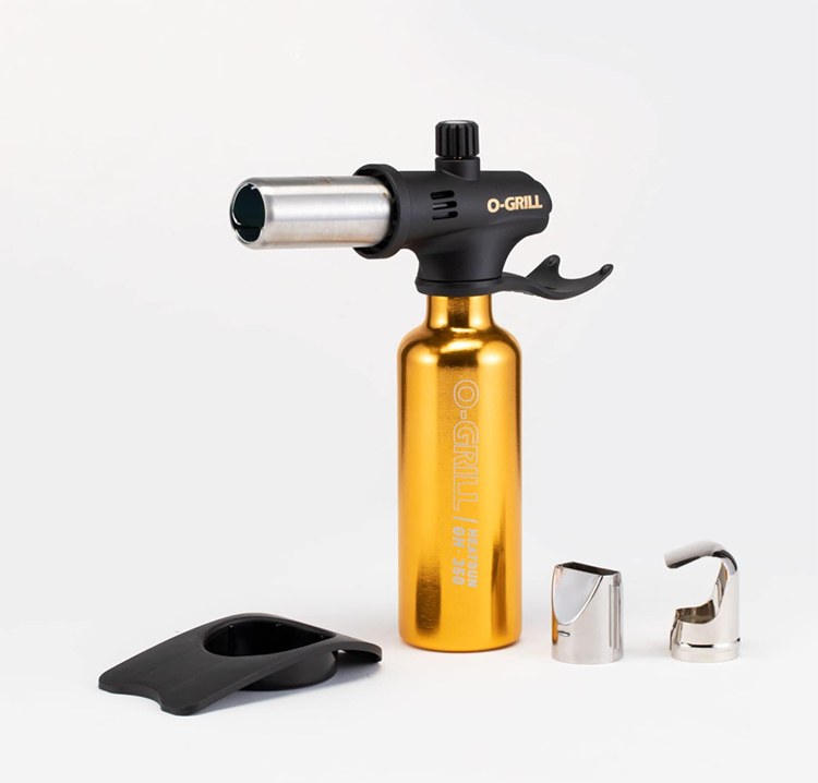 -可旋式把手護套可於放置時將噴火管朝上作業,結合固定底座可用於不同角度作業。