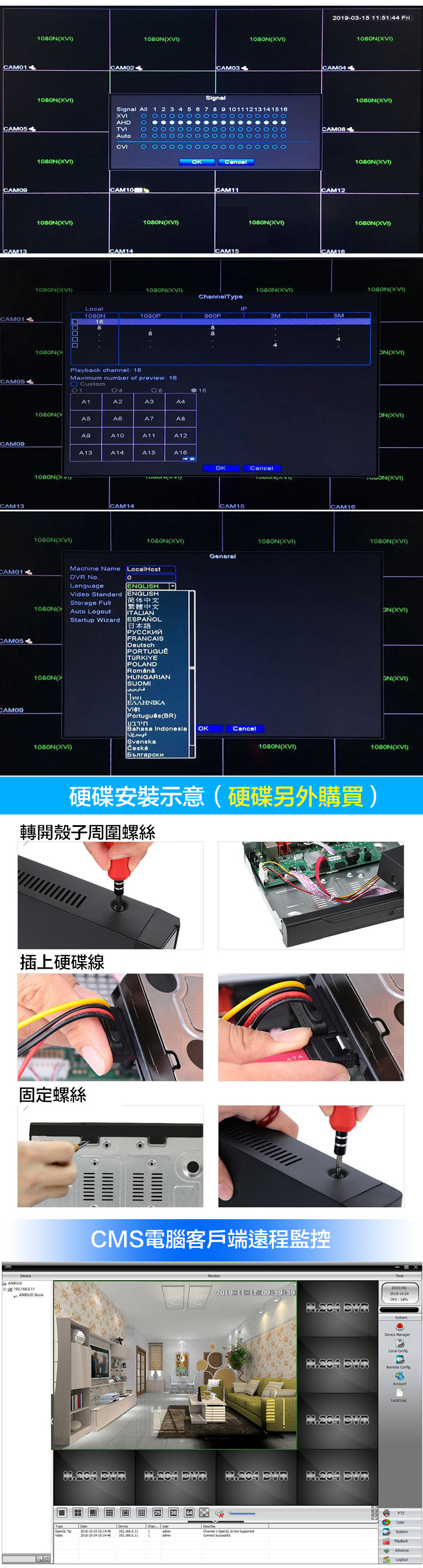 品名:500萬 16路DVR硬盤錄像機 (不含硬碟)