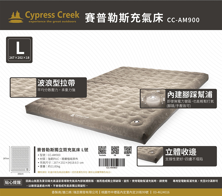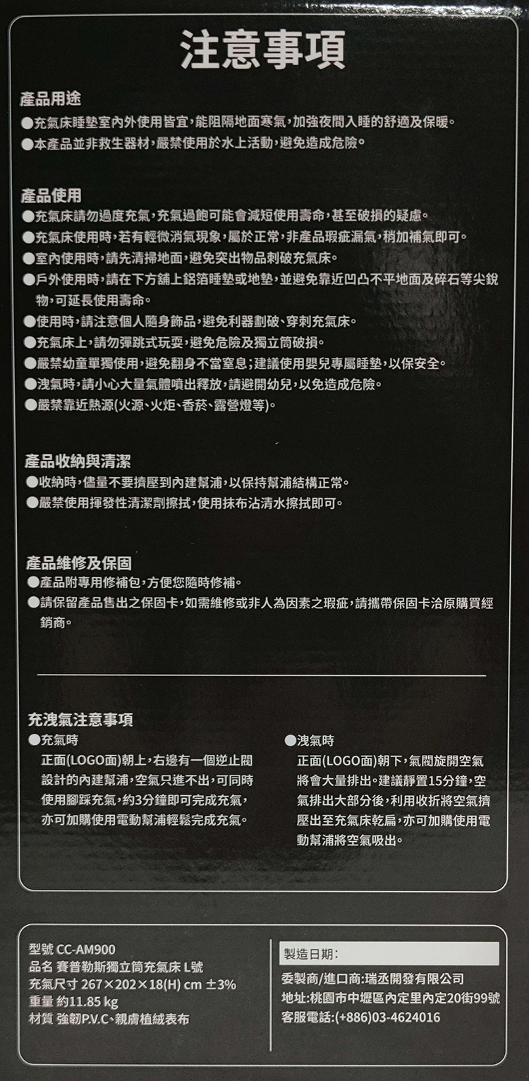 充氣尺寸:267 X 202 X (H)18±3 CM